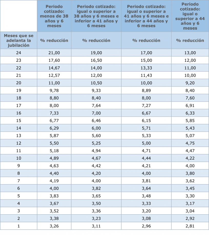 - Cuantía de meses que adelanta la jubilación